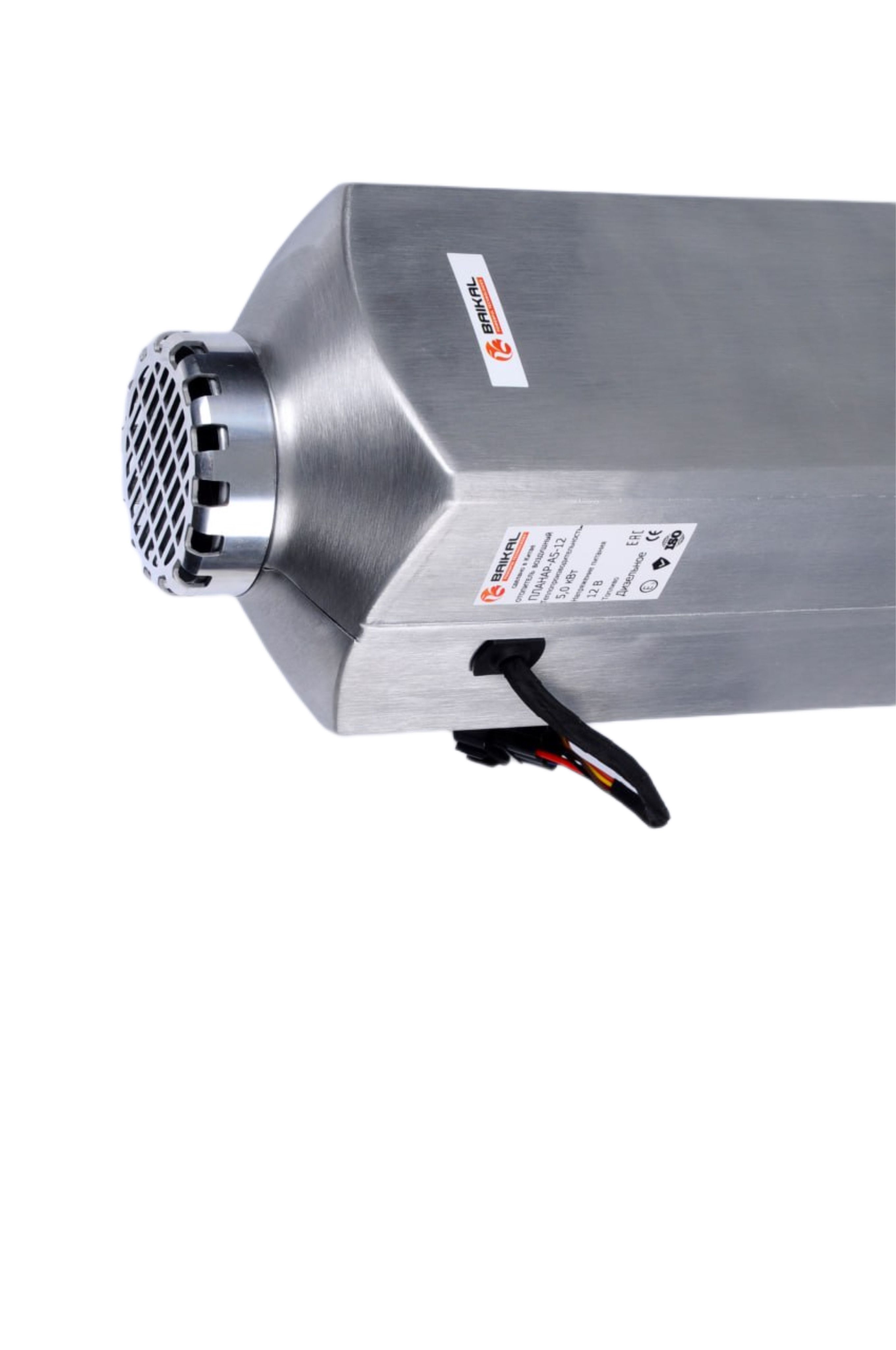 Автономный отопитель BAIKAL 12V в алюминиевом корпусе (сухой фен) предназначен для поддержания комфортной температуры в автобусах, фургонах, легковых и грузовых автомобилях, тракторах, спецтехнике, катерах, гаражах, бытовках, теплицах, палатках в холодное время года. Отопитель может работать полностью в автоматическом режиме. Дизельный отопитель автоматического действия работает от бортовой сети 12V на жидкостном топливе. Мощность дизельной автономки - 5 кВт, работает даже при выключенном двигателе. Расход у АКБ как у маленького диода - хватит на всю ночь.